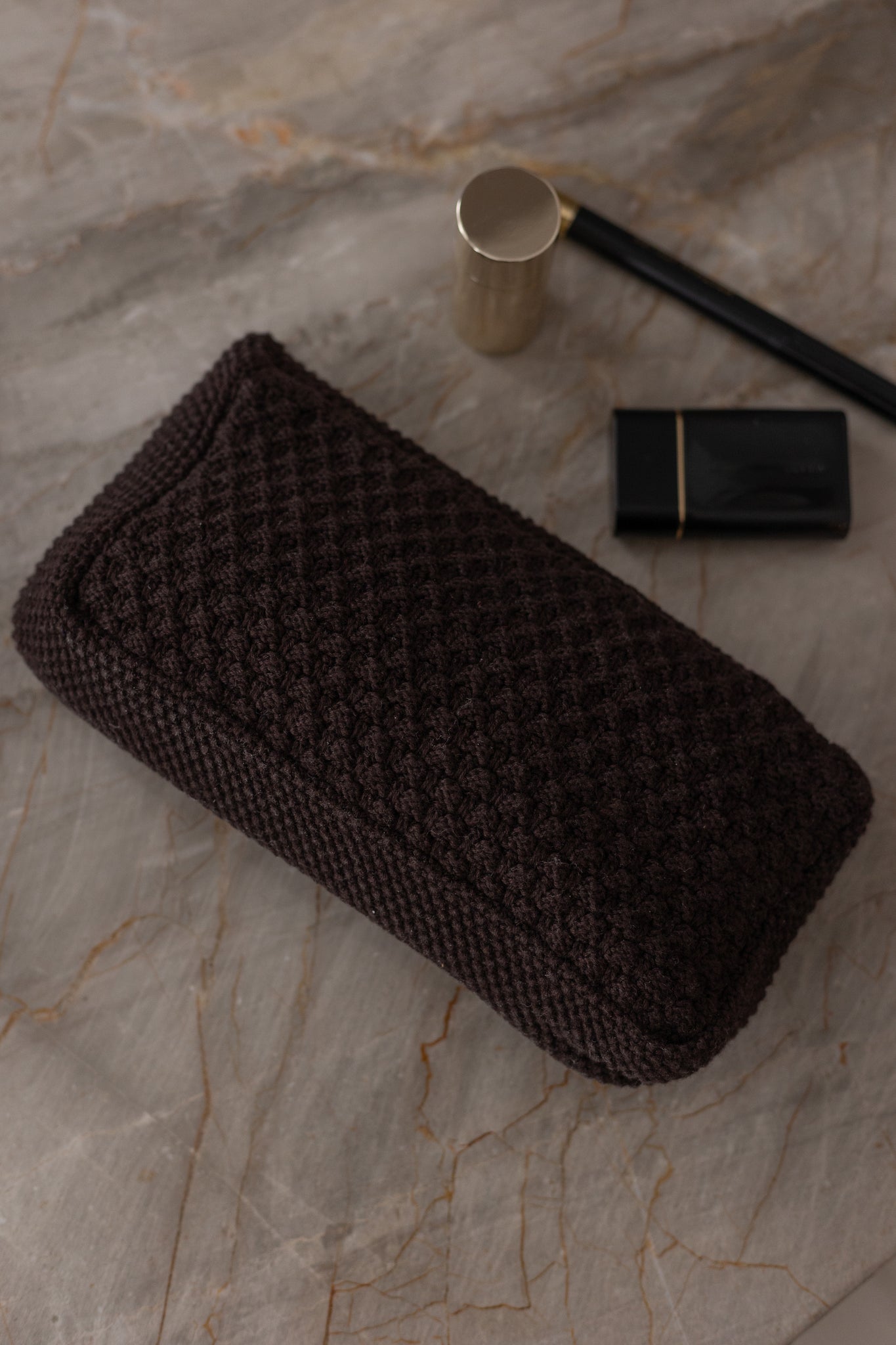 Knitted Clutch on-the-go for your mobilephone, libstick or keys or use it as a cosmetic bag for your cosmetic and small stuff.